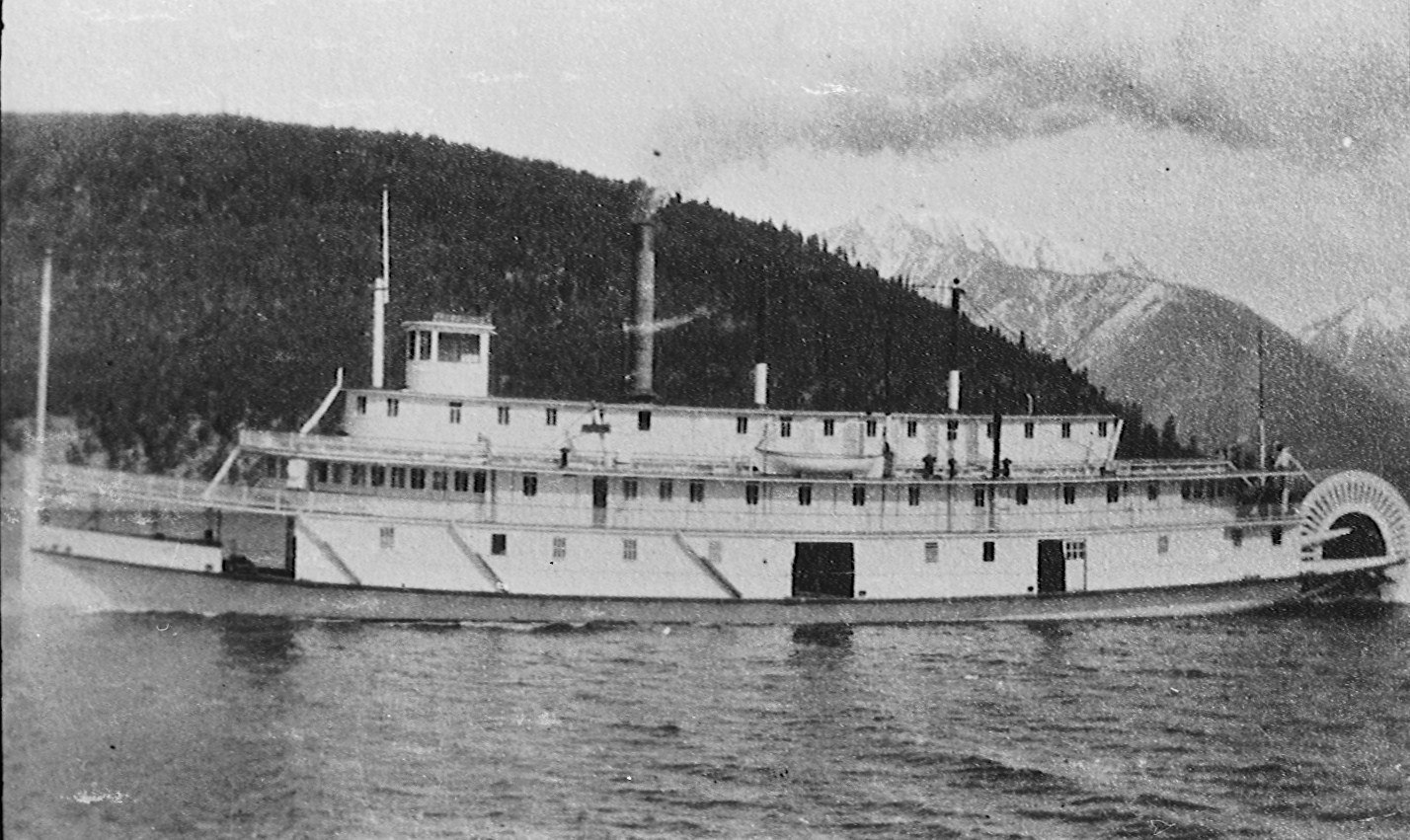 1897 – SS Rossland built in Nakusp and launched without furniture, fittings or windowpanes so that the SS Lytton could be withdrawn at last for repairs, here seen sailing on Upper Arrow Lake (1898- 1916).