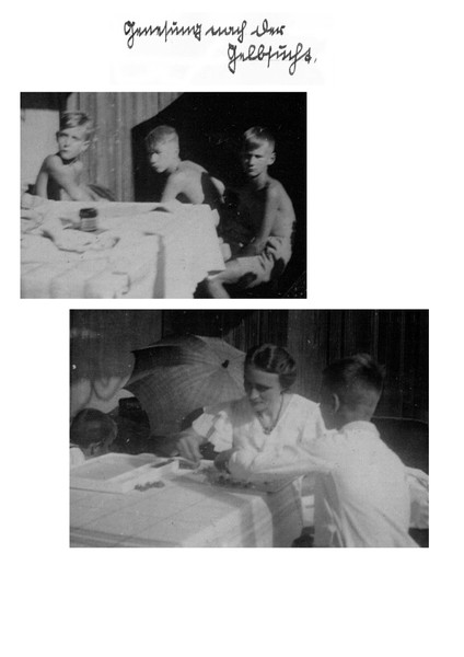 We were very happy, when we received an invitation from Uncle Ernst and Aunt Erika. We had never been on such a huge estate before. Finally we were on our way. The traveling day was July 8, 1942. At four o’clock we departed. And around 13 hours we arrived. When we got off the train, Karl with the secretary were standing on the platform. Then we traveled for an hour to Gutfelde, Aunt Erika and the children Adolf, Eka, and Gerry were waiting at the stop. At the beautiful staircase to the entrance Uncle Ernst greeted and welcomed us.