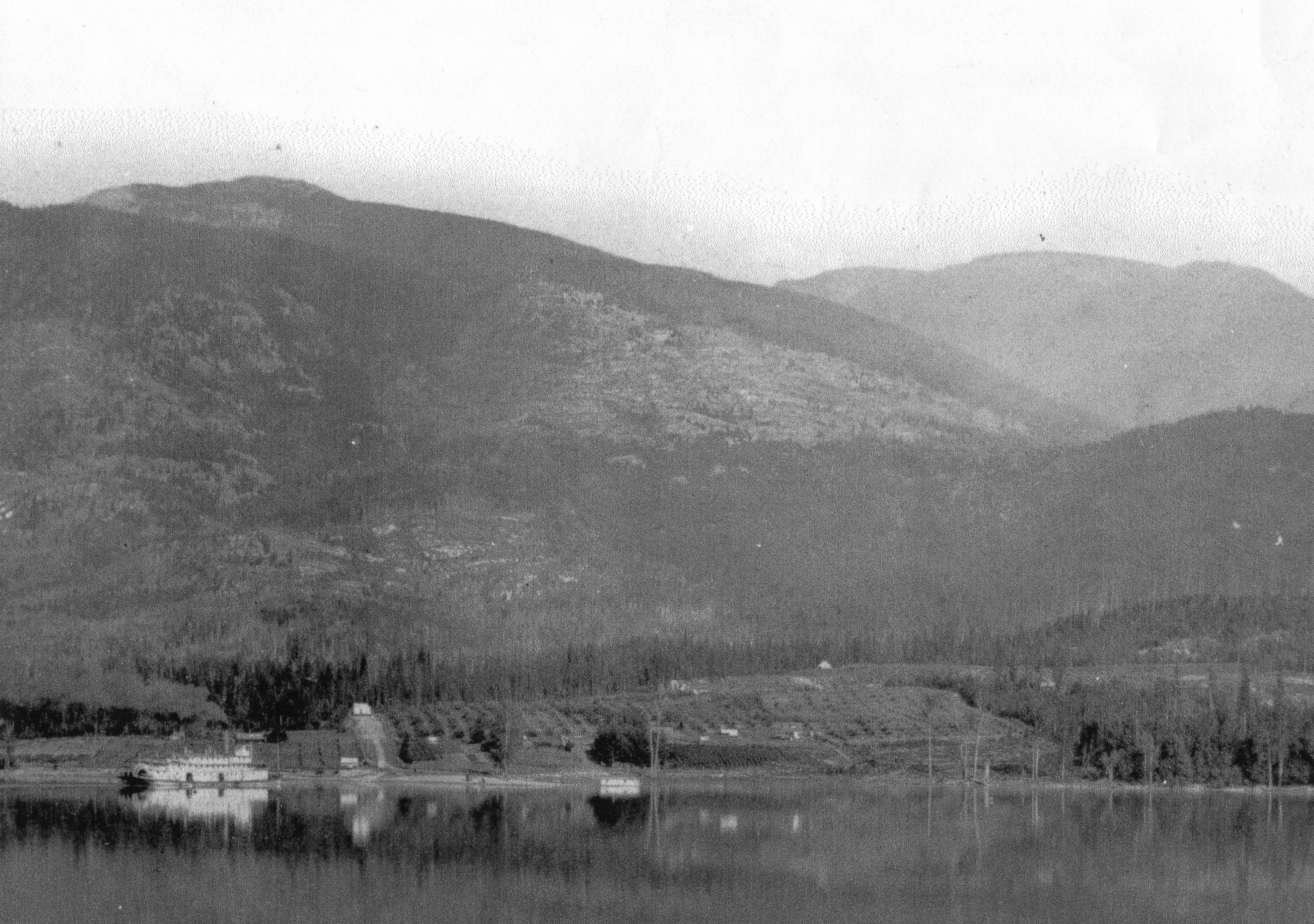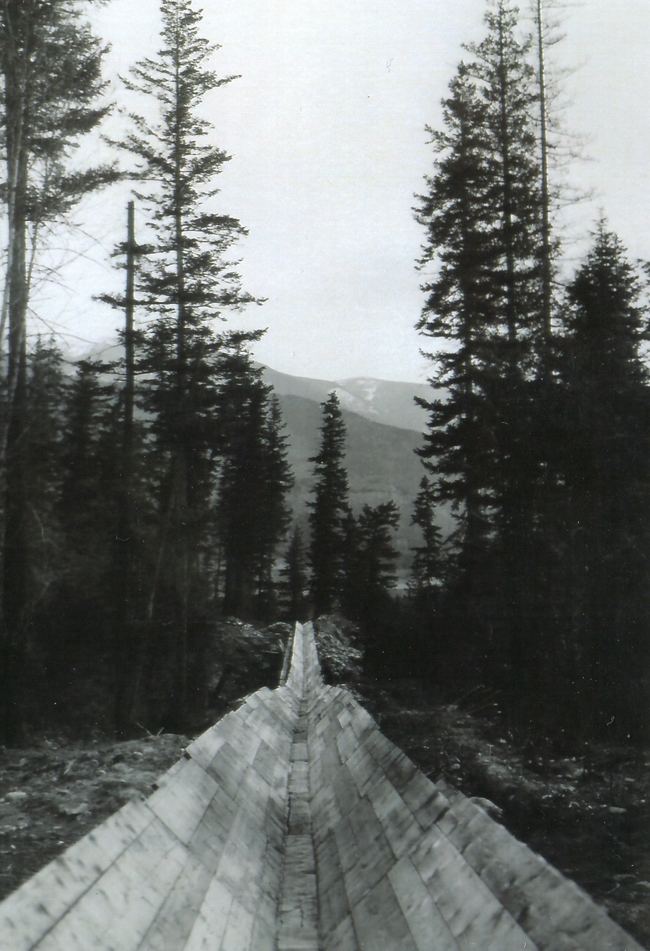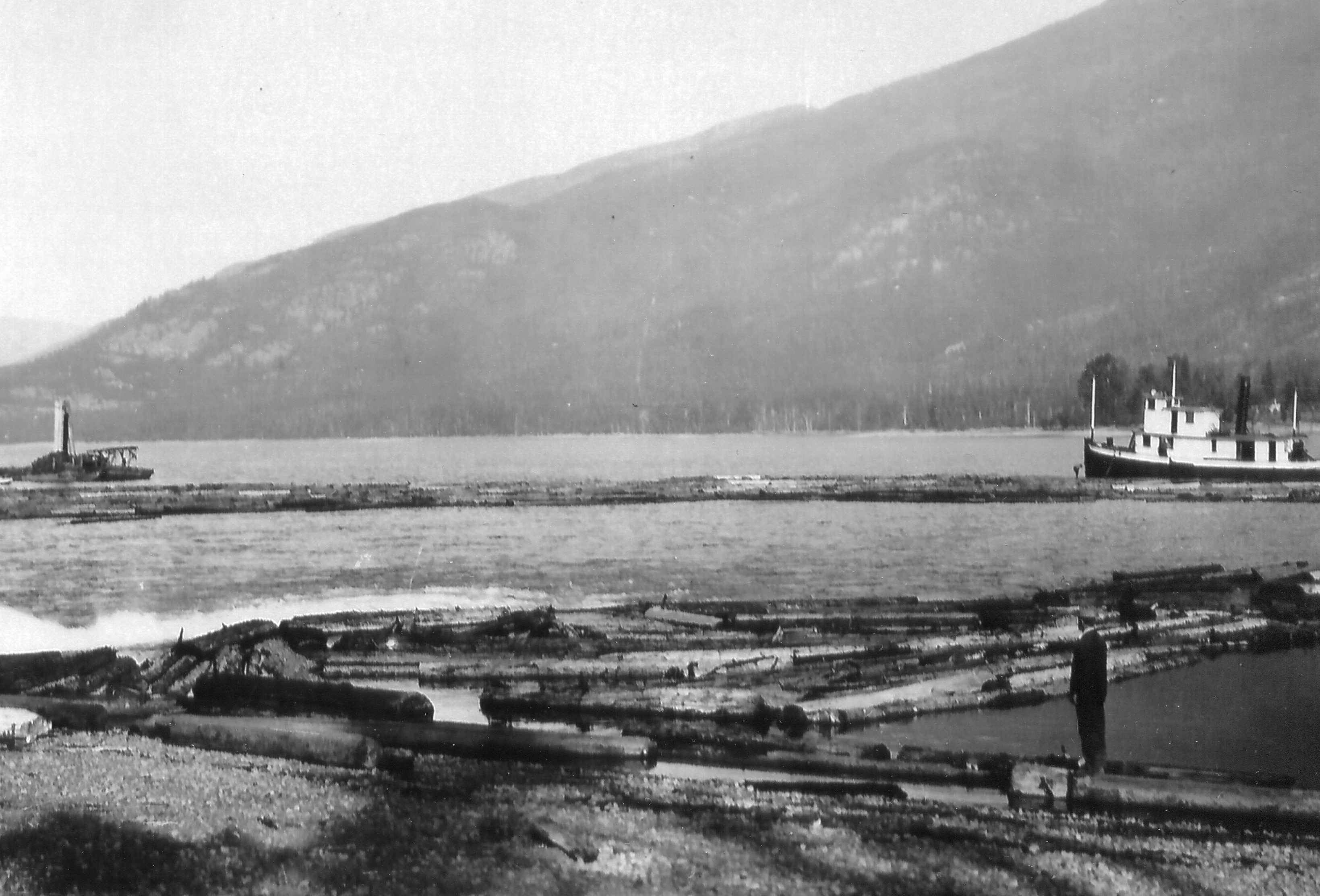 Needles had also been a logging centre. In 1922, it had a large log flume for logs that ran for four miles from the Whatshan to the Arrow Lakes, at one place where it crossed the road it was 12 feet above.