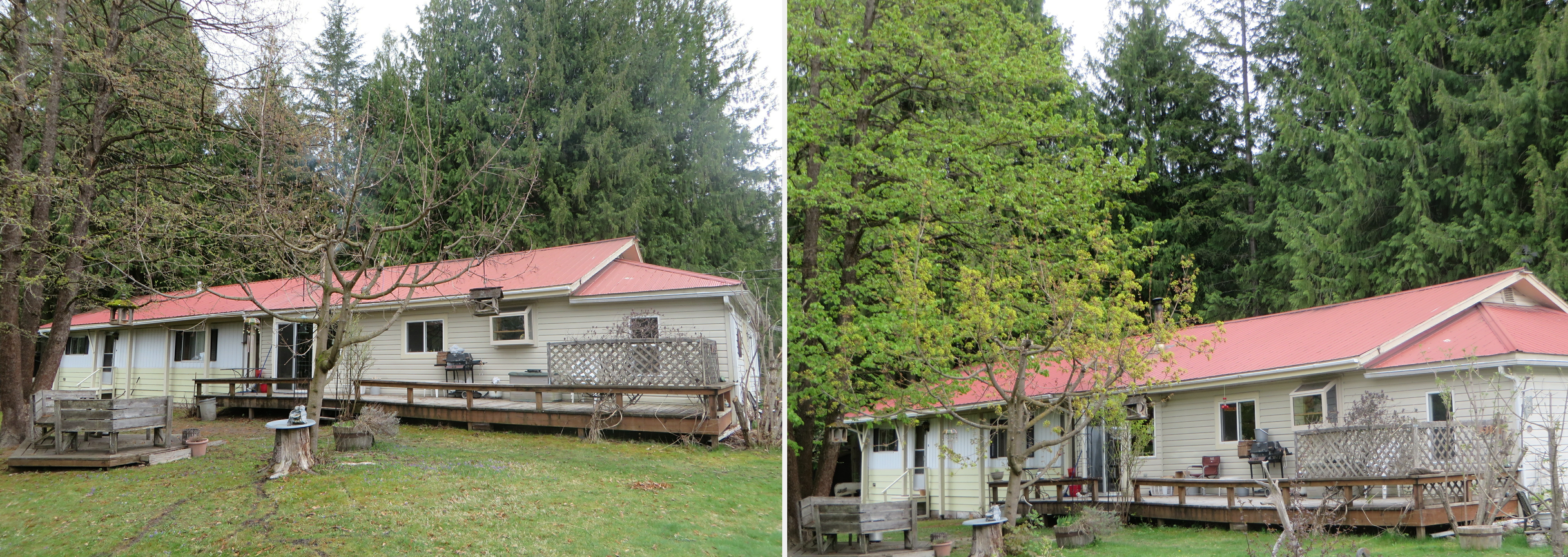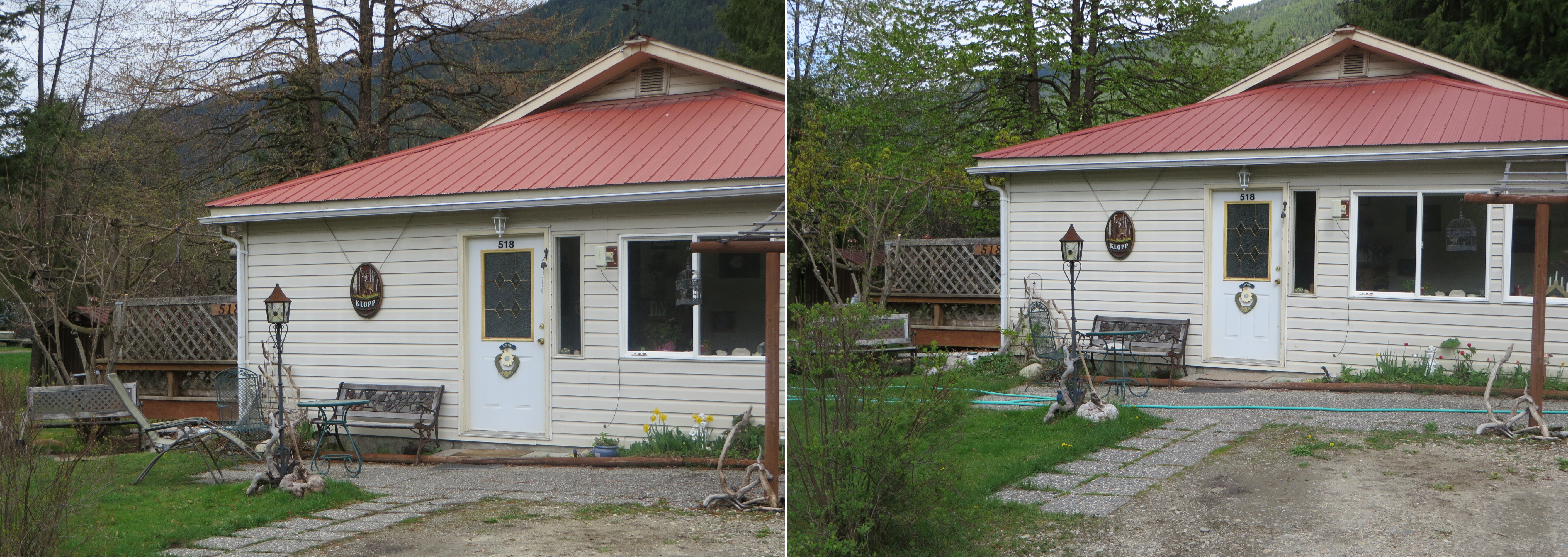 Not too much change is noticeable here except for the greening of the little bush on the left. The tulips in front of the house are gradually replacing the daffodils.