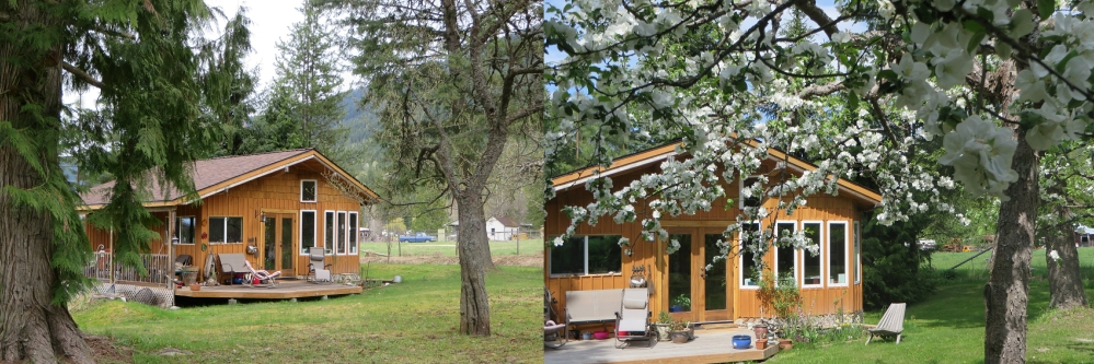 On the very last picture you can see the blossoms of the Grafenstein apple trees, which we will harvest in September. They produce the biggest and sweetest apples in the Kootenays. The only drawback is that they don’t keep too long. If all goes well with the weather this year, we will have a bumper crop.