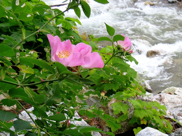 On a recent walk down to the Arrow Lake and our local Heart Creek we encountered so many wild roses that I decided to devote an entire post to the Alberta rose, which is also native to much of the BC landscape. As an emblem, it represents our neighbouring province to the east. It is extremely hardy as far as roses go. It can easily take -40 degrees weather and raging blizzards, which are quite frequent in that corner of the world. It must feel like being in heaven here in our relatively mild Pacific climate. So here are five pictures of our recent evening walk. Enjoy.