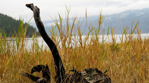 It is hard to imagine that some people could like a grey November day. But pampered by so much sunshine for so many days in a row, my wife and I felt very adventurous and decided to go for walk along the shore of our beloved Arrow Lake. Walking through the woods, we found some mushrooms posing to be photographed. At the shore we discovered more of nature’s art work, a head sculpture in the water, interesting driftwood shapes, and tall golden grasses. Even when totally clouded over, our lake, valley and mountains look beautiful. Enjoy.