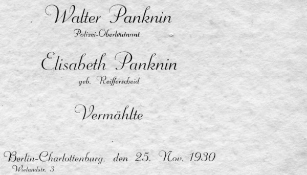 Before Papa and Mutti got married, Papa insisted that their personal life would follow the expectations that would satisfy the honour code of a German police officer. For one thing, to prevent tarnishing his image among his colleagues, he decided to adopt the ten-year-old Elsbeth as his daughter. Her name was subsequently officially changed in the family register to Elisabeth Panknin. For another, Mutti had to abandon her occupation as a photo model and give up her studio employment. State employees and civil servants were expected to support their wives and family fully. It was considered a disgrace to have one’s wife working. For Mutti, it was a new beginning. And if it had not been for the disastrous and chaotic times at the outbreak of WW2, one could have easily ended the story with the fairytale-like concluding sentence, ‘And they lived happily ever after.’