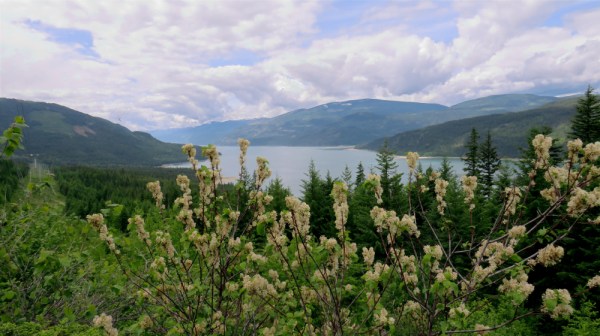 Last week my wife and I paid a return visit to one of our favourite outlooks overlooking the Lower Arrow Lake. After a long dry spell so early in the spring season, Nature was quite a bit behind. But now it had a new fresh look after a much needed rain. Apart from capturing the landscape in the clear air with the clouds forming a dramatic background, my focus was on the colourful flowers and bushes that attracted my attention. The pictures turned out to be so stunning and beautiful that I make no apologies for going over my limit of five photos per post. Enjoy.