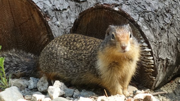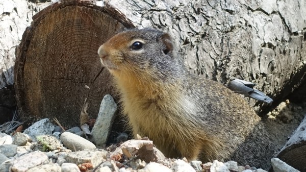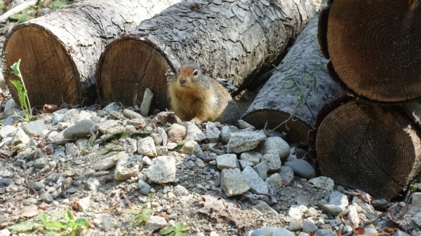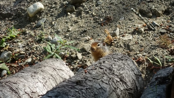 My wife and I have been camping for about a week at Arrow Lake, where we found relief from the unbearable heat at home. Forest fires are burning again. But we are fortunate this year. None of the BC forest fires are very close to us and do not endanger our little community. While relaxing in the cool breeze, I notice a gopher (prairie dog) cautiously approaching me. As it peered over a log and looked at me for a long time, I quickly got my camera out. Instead of running away it came closer and closer. Obviously, it recognized me as the friendly human from the previous year. After a few minutes, it was posing for a portrait less than a metre away. Enjoy.