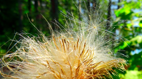 While camping on the Needle’s side of the Lower Arrow Lake, I observed the transformation of a thistle from a purple flower into a seed head. Most people do not find the final stages of any flower very attractive. Perhaps the image of decay and death troubles them, as they are overlooking the new beginning of life in the presence of myriads of seeds. While a dandelion seed resembles a tiny parachute, the thistle seed looks more like a feathery ball that can travel large distances before it lands on the ground. The wind strongly blew when I took the picture. But the single seed on the upper right was well anchored by a spider’s web string. Enjoy.