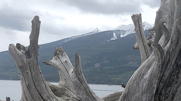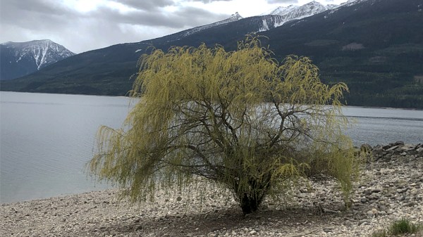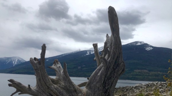 On May 1st, I took my car to Nakusp to get it serviced. There is no better way to bridge the one-hour waiting time with a little stroll down to the beach at Arrow Lake with your camera handy. Spring has now sprung very noticeably. Hyacinths and common stork’s bills have spread from nearby gardens onto the steep embankment at the lake. With Saddle Mountain looming high above the lake in the background, I also captured some impressive driftwood sculptures and a willow tree in its verdant glory. The cheerful German folksong “Komm lieber Mai und mache die Bäume wieder grün.” emerged from distant childhood memories. You find a few of my photos below. Enjoy.