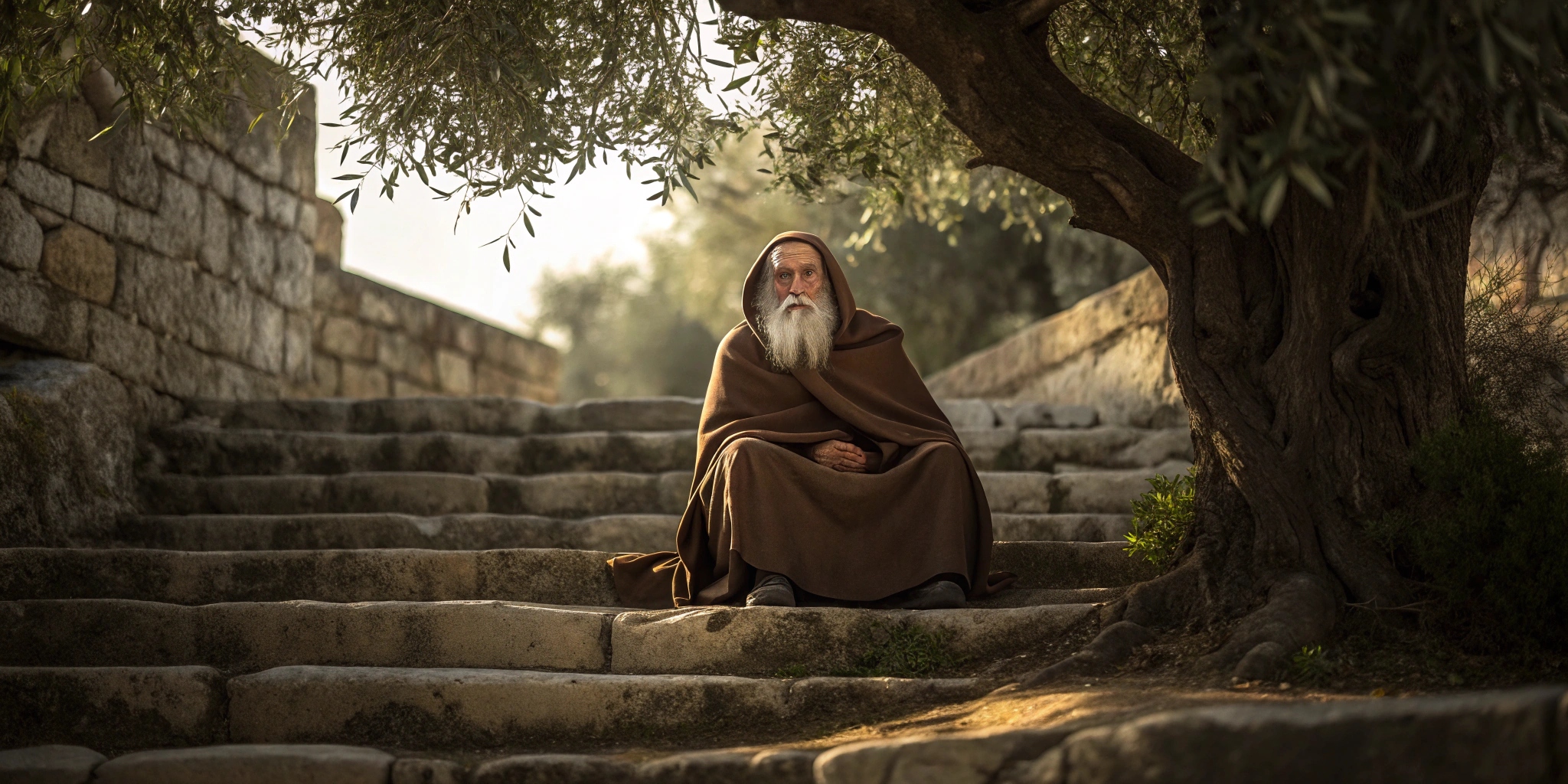 The old man sat on the stone steps. After a brief pause, he continued.