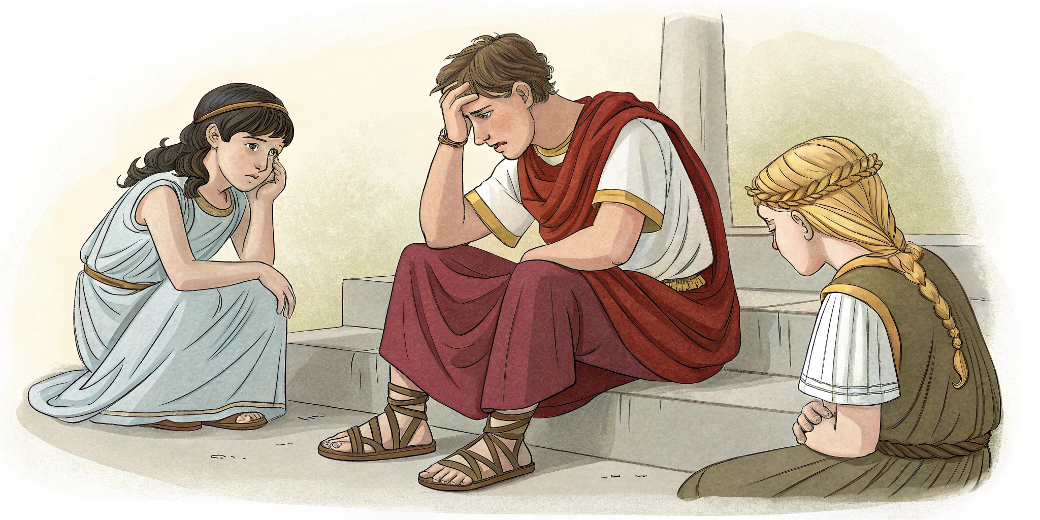Plötzlich schlug das Pendel in die entgegengesetzte Richtung aus. Für einen kurzen Moment fand er Erleichterung, indem er Claudia die Schuld gab. „Man verlobt sich doch nicht über Nacht“, argumentierte er. „Warum hat sie mir nicht früher geschrieben? Warum hat sie den Briefwechsel so lange hinziehen lassen? Was ist mit ihren anderen Brieffreunden, dem jungen Mann aus Korinth zum Beispiel? Möchte sie sich alle Optionen offenhalten? Ist sie wie eine Biene, die in einer Art romantischem Tanz von einer Blume zur anderen fliegt, um zu sehen, wo sie den süßesten Nektar findet?“ Nachdem er beide Enden des emotionalen Spektrums erlebt hatte, entschied sich Publius schließlich für eine ausgewogenere Sichtweise. Das wild schwingende Pendel kam in der Mitte zur Ruhe. Die Sorge um Claudia verdrängte Wut und Eifersucht; vielleicht war sie der Verlockung des Eheglücks zu schnell erlegen.“