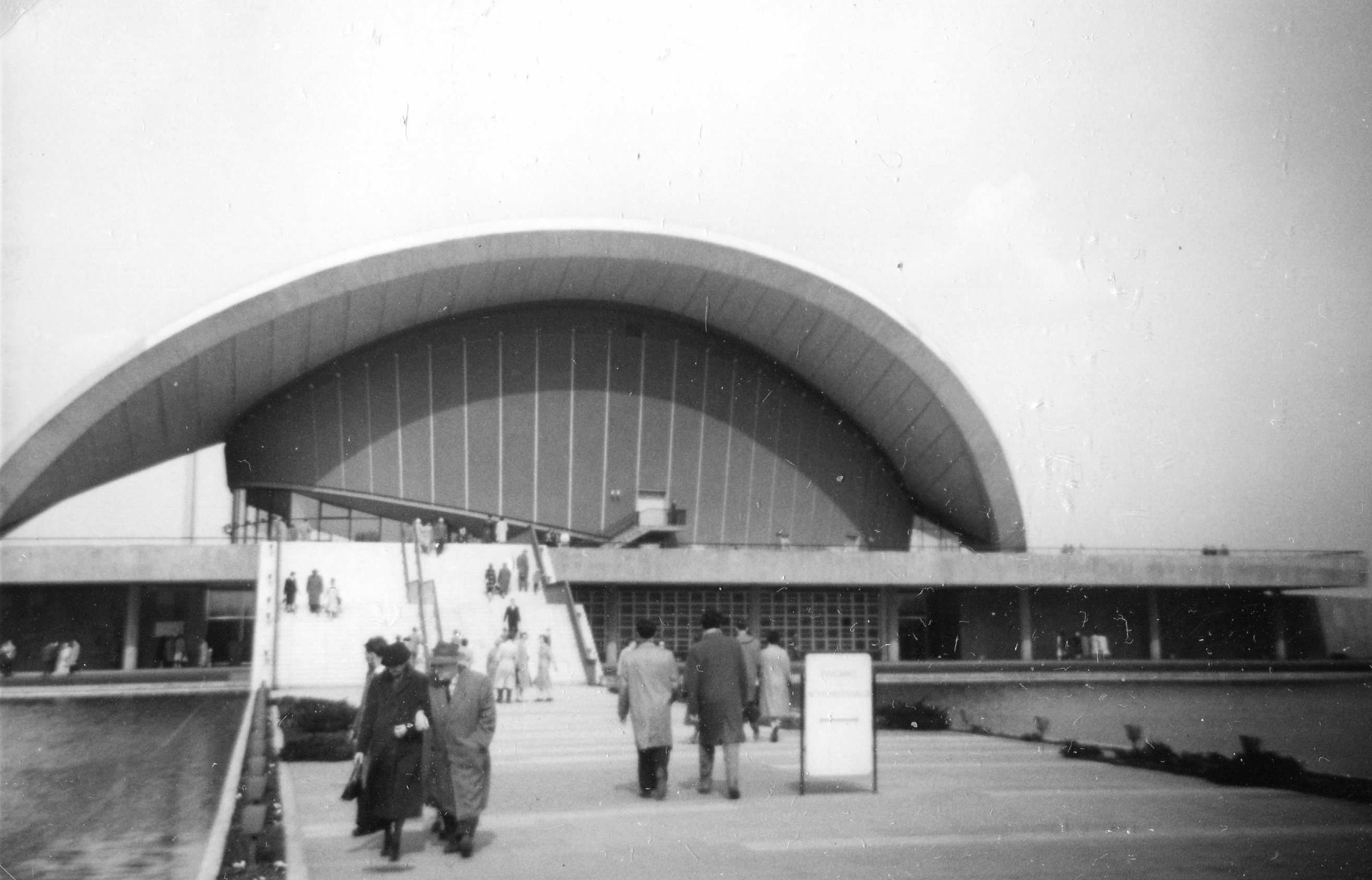 On the very next day Peter took me on a whirlwind sightseeing tour through the divided city that was still interconnected by subway, streetcar and roads. Thus, Berlin was the only remaining escape route for thousands of refugees, until the building of the infamous wall stopped the ever-increasing flow in 1961. Among the sights were the illustrious Brandenburg Gate, which stood right behind the border crossing in East Berlin, and the Soviet War memorial commemorating the 80,000 Russian soldiers who died in April and May 1945 in the Battle of Berlin. Then we went to see the Congress Hall, which on account of its shell-like shape the Berliners irreverently call the Pregnant Oyster. Here Bill Haley and his rock and roll band caused an uproar, when he whipped the mob of young fans into such a frenzy that they demolished their seats normally reserved for more conservative concert goers.