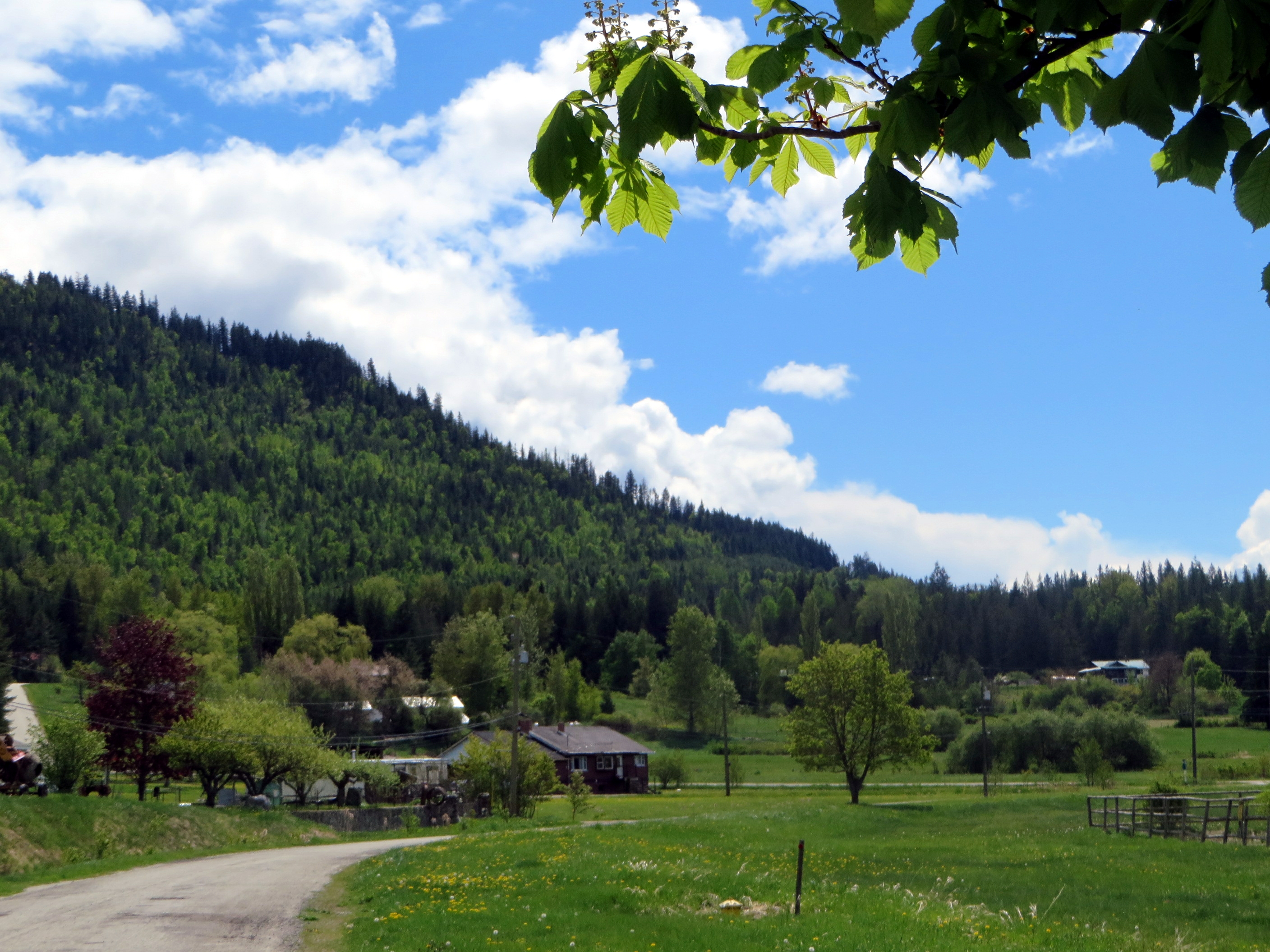Turning around under a flowering chestnut tree, you look back on the hillside road you’ve just come from.