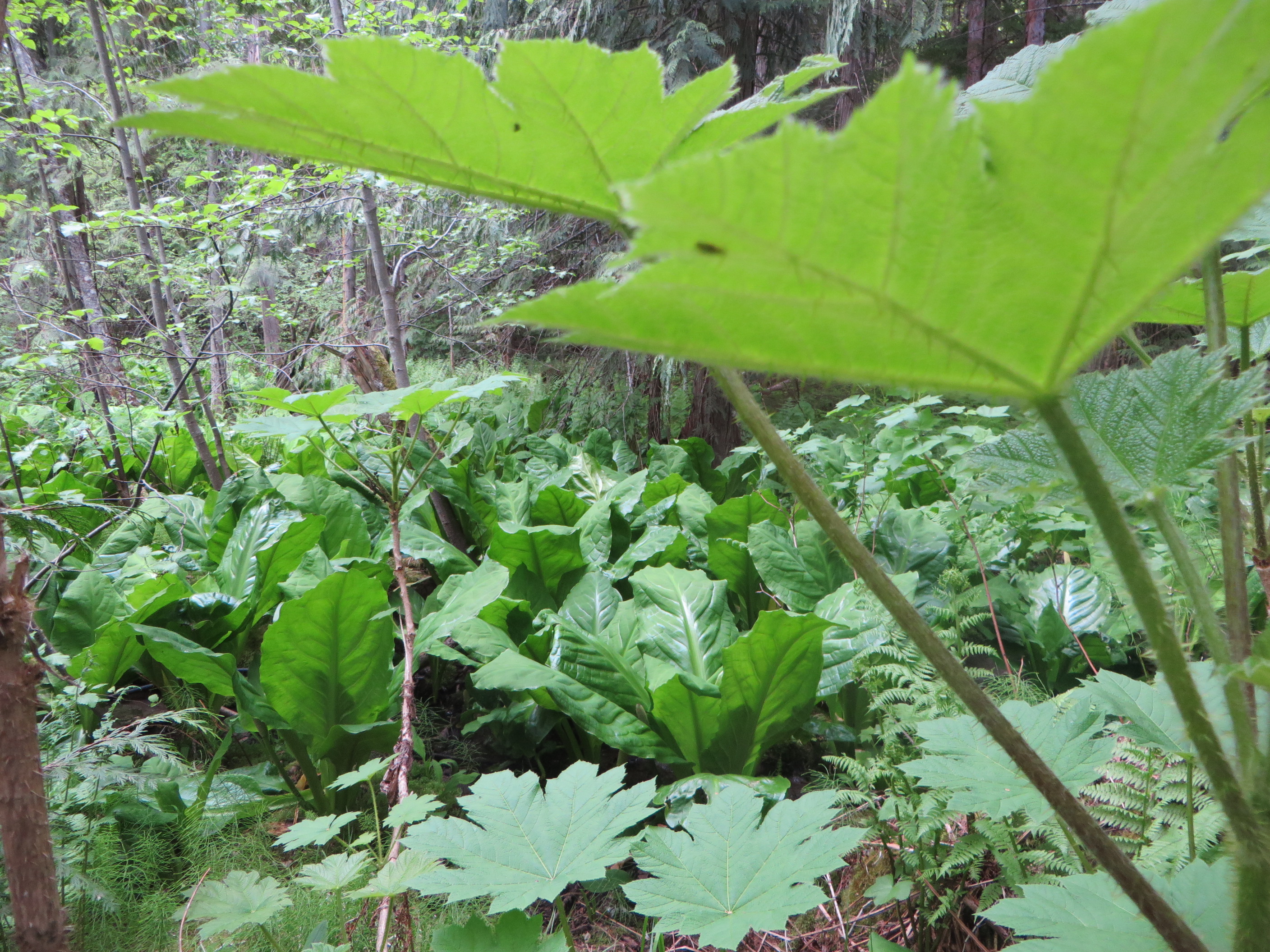 dense growth of skunk cabbage and giant leaves of the devil’s club,
