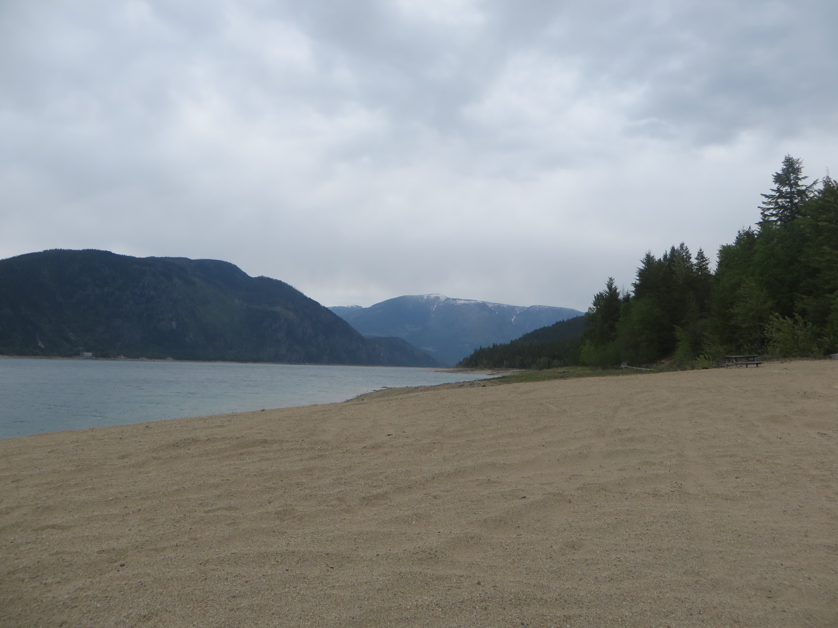 The beach looks deserted now. But in July and August it attracts sun-seeking people from all over the province and even as far away as Alberta. It is perhaps the only place along the shores of the Arrow Lakes, where you can enjoy a sandy beach at low and high water levels. There you can go swimming in the refreshing water, boating, sun bathing, playing games or just lazing away the hot summer days with your friends and family.