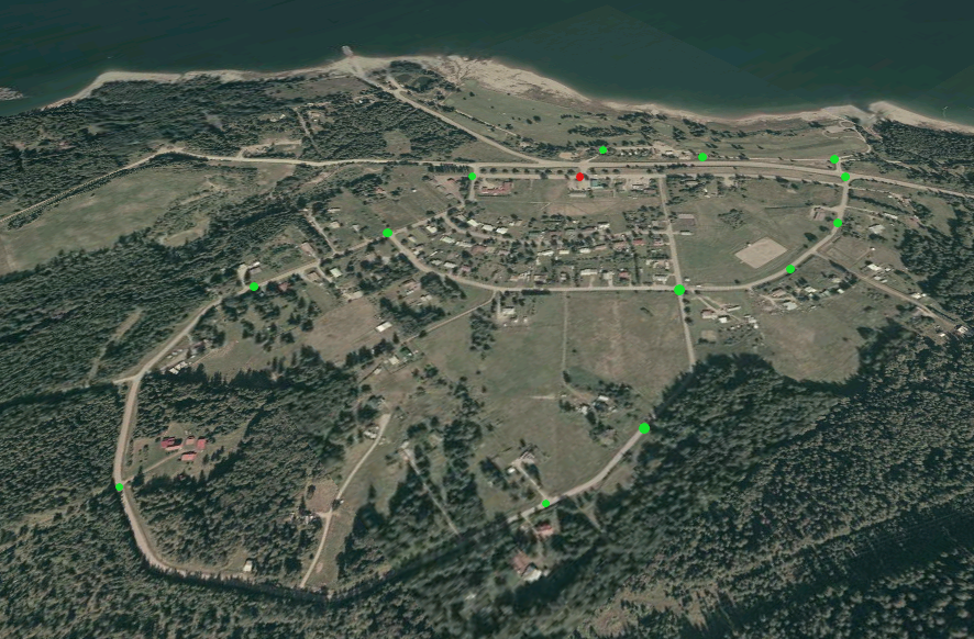 Google Earth Map of Fauquier with the red dot marking the starting and end point of the walk around the loop