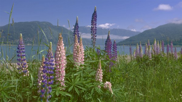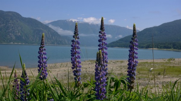 On one of the rare rainless days, my wife and I eagerly went on a digital hunt for late spring images worthy to be published. We both lucked out on our leisurely stroll down to Heart Creek swollen with the melt waters from the nearby mountains. I particularly liked the fern in its monochrome green, the lupines in their multi-coloured glory, the piece of snake-like driftwood that I had stuck into the sand, and, of course, the wild waters tumbling over the shiny rocks in the creek bed. Enjoy!