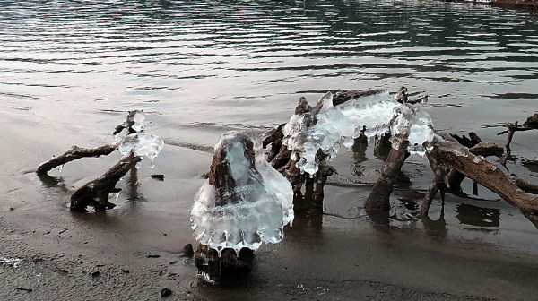 On Valentine’s Day, my wife and I ventured out into the cold again. As we put on very thick gloves to prevent frostbites, we found it very difficult to handle those tiny buttons on our digital cameras. So we bared our hands to shoot some more pictures of the impressive ice formation. In return for our numb fingers, we were rewarded with a few more photos with interesting ice formations. Over a cup of coffee and a delicious apple torte, we always preview, compare and critique each other’s photos. Rain and milder weather are in the forecast. So this could be easily the last instalment of winter photos. Enjoy.